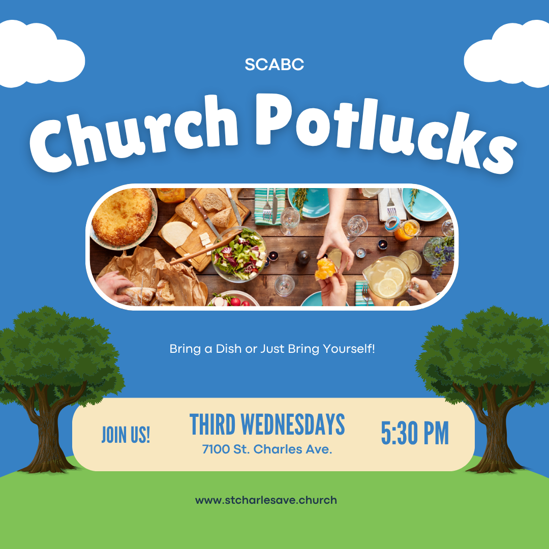 We gather on the third Wednesday of each month for a community potluck dinner. Bring a dish or bring yourself, and drop by whenever your schedule allows, even if it’s not right at 5:30.